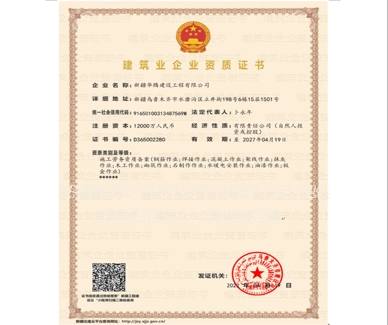 新疆維吾爾自治區計算機信息系統集成企業證書